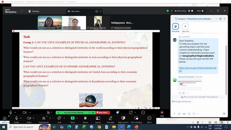 Associates of the Geographical Institute "Jovan Cvijić" SASA, Ana Milanović Pešić, Slavica Malinović-Milićević, Tamara Gajić, and Marko D. Petrović, have been engaged as visiting professors at the Institute of Natural Sciences and the Graduate School of Economics and Tourism at the Eurasian National University (ENU) in Astana (Kazakhstan) in the academic year 2025/2026.